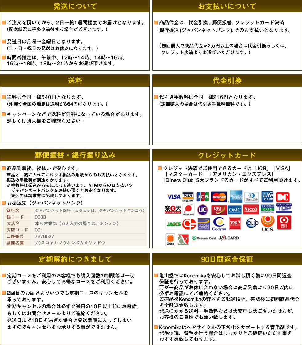 お支払方法などの詳細につきましては亀山堂ショッピングガイドをご覧ください。